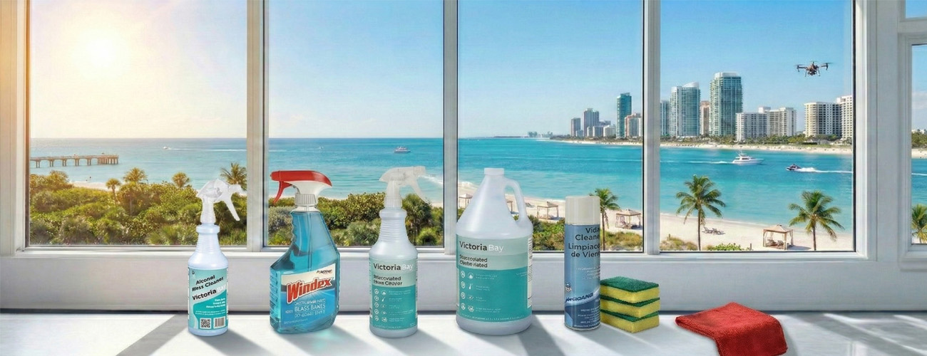The selection features ammonia-based formulas for exterior windows and high-exposure areas, as well as alcohol-based solutions suited for interior glass and mirrors.