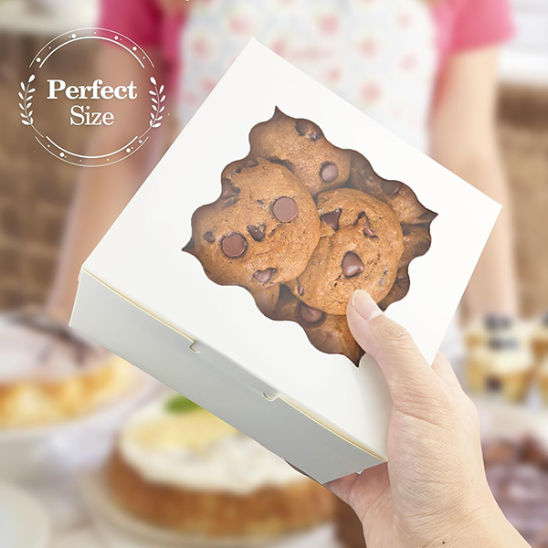 The 6x6x3 donut box showcases pastries through a clear window. White SBS paperboard is sturdy and food-safe. It ships flat and sets up fast.