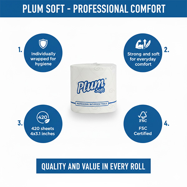Plum Soft Individually Wrapped Toilet Paper – 2-Ply is a dependable solution for hotels looking to improve comfort and hygiene standards while maintaining operational efficiency and guest satisfaction.