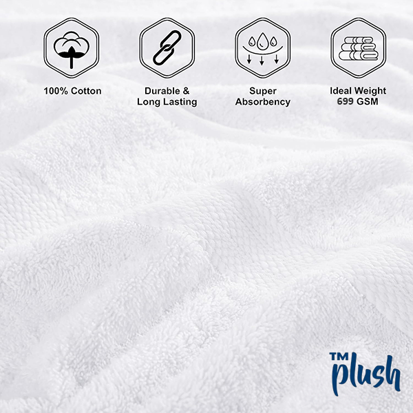 The TM Plush Bath Towel (27″ x 54″) with 699 GSM offers luxurious softness, absorbency, and brightness.