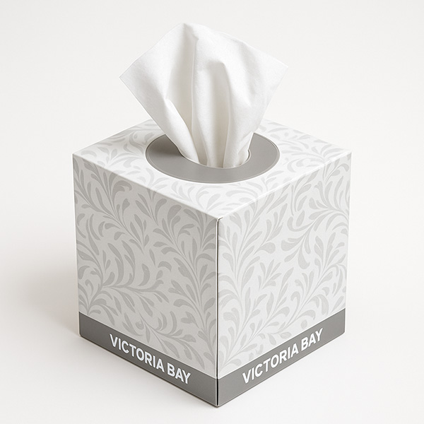 Victoria Bay Premium Facial Tissue offers superior strength and absorbency with its 2-ply white design, providing a soft, gentle touch.