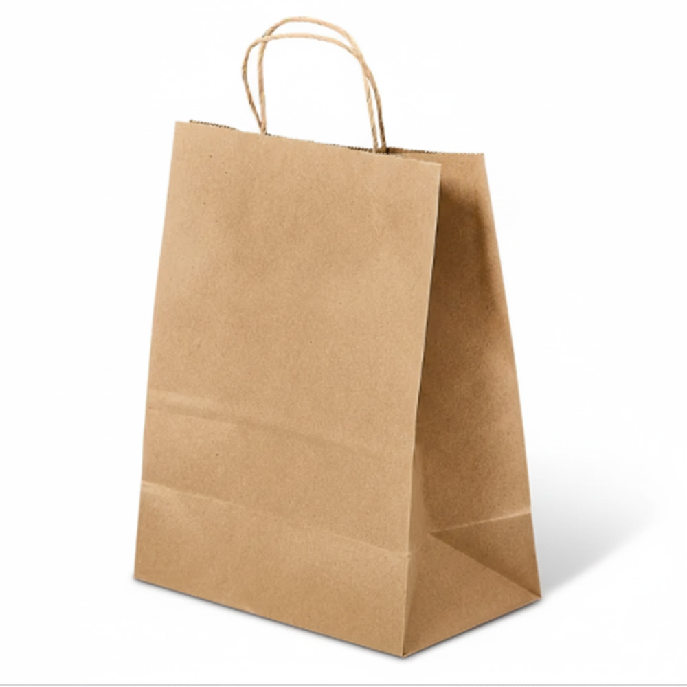 This Victoria Bay shopper bag uses #81 Kraft with reinforced handles. Size 8×4.5×10.25 in with a gusset for extra space.